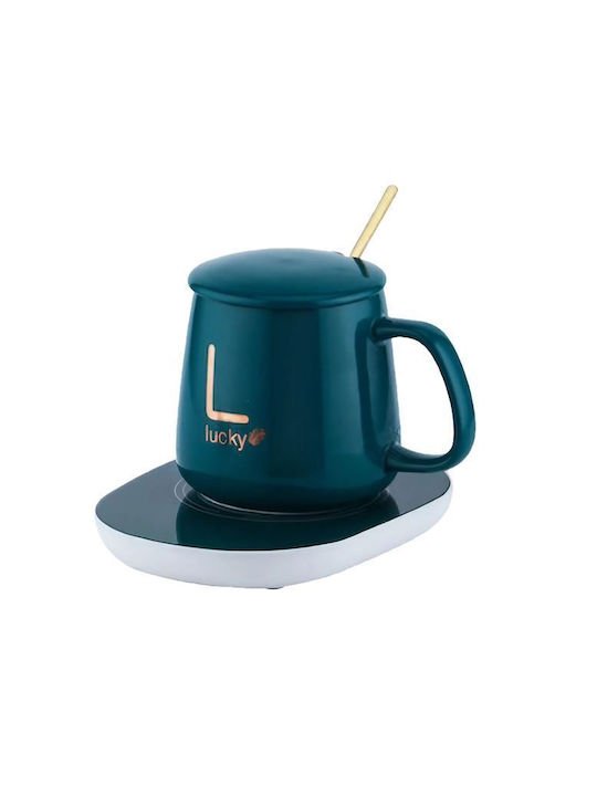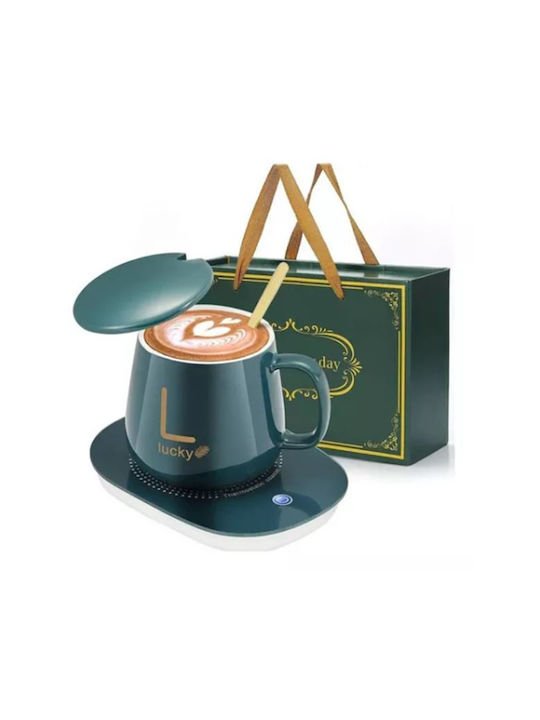 Κεραμική κούπα με καπάκι και θερμαινόμενη βάση USB
