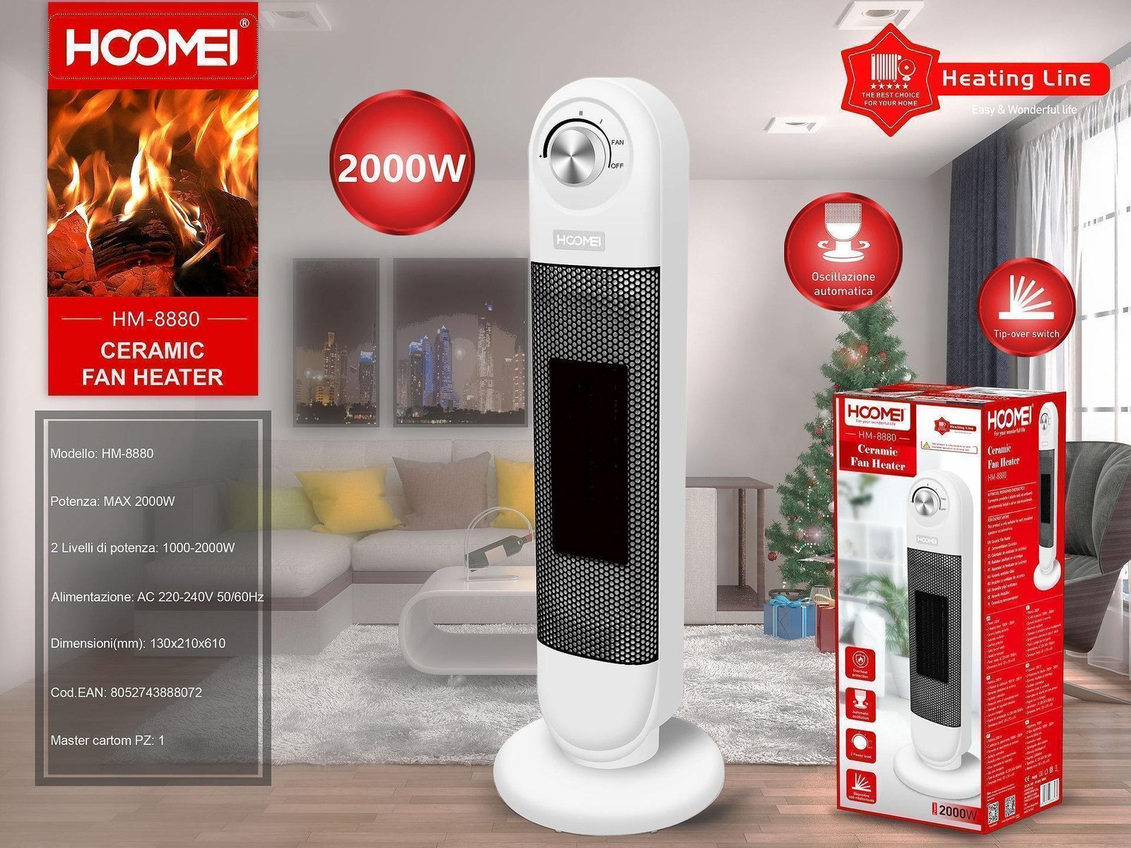 Κεραμικό Αερόθερμο Δαπέδου 2000W Hoomei HM-8880 Λευκό