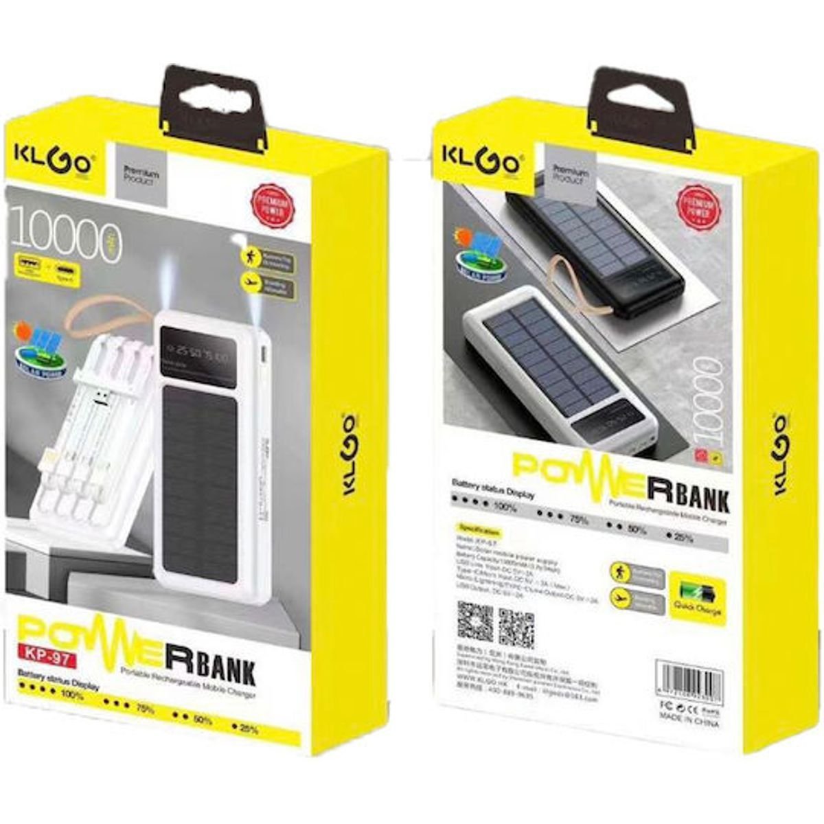 KLGO KP-97 Ηλιακό Power Bank 10000mAh Λευκό
