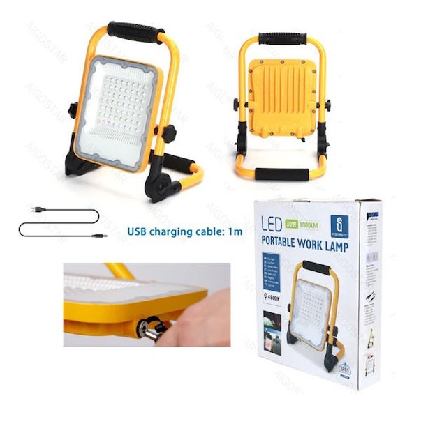 Προβολέας LED της Aigostar, κατάλληλος για συνεργεία ή για χρήση σε χώρους όπως η αποθήκη. Tροφοδοτείται μέσω της θύρας USB. Έχει ισχυρή ένταση φωτισμού που φτάνει έως 1000lm.