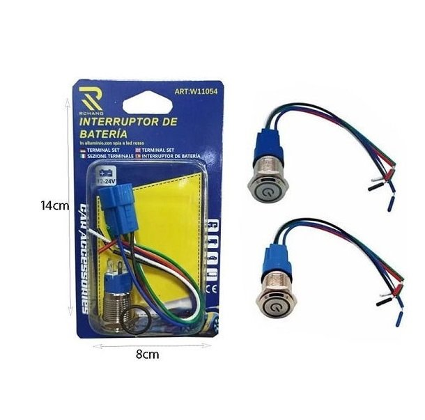 LED Φωτιζόμενος Διακόπτης – Μπουτόν On/Off Ανοξείδωτος 16mm 12-24V W14412-3