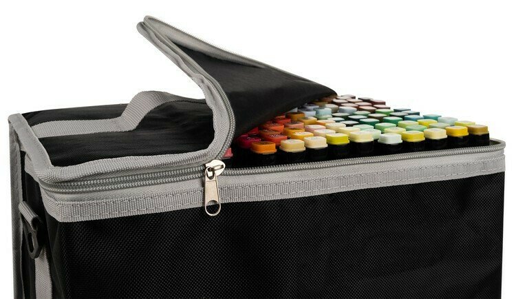 Η άνετη λαβή θα αποδειχθεί ιδιαίτερα εύχρηστη για μικρούς και μεγάλους ! Το σετ διατίθεται σε μια θήκη οργάνωσης μου κλείνει με φερμουάρ και τοποθετούνται οι μαρκαδόροι κάθετα!
