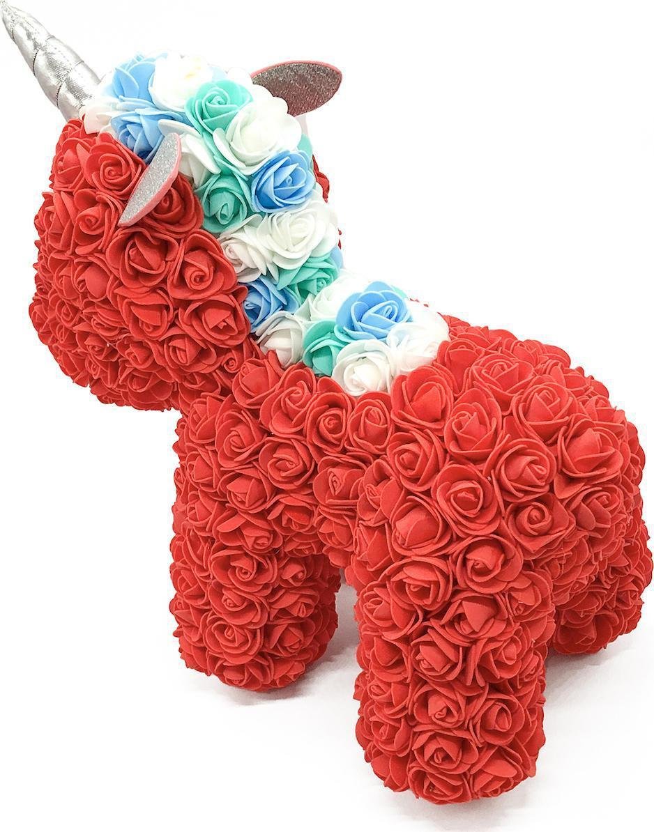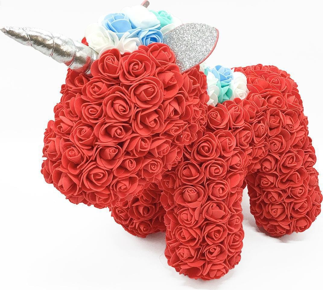 Μονόκερος Αρκουδάκι από Τριαντάφυλλα Κόκκινος 30cm