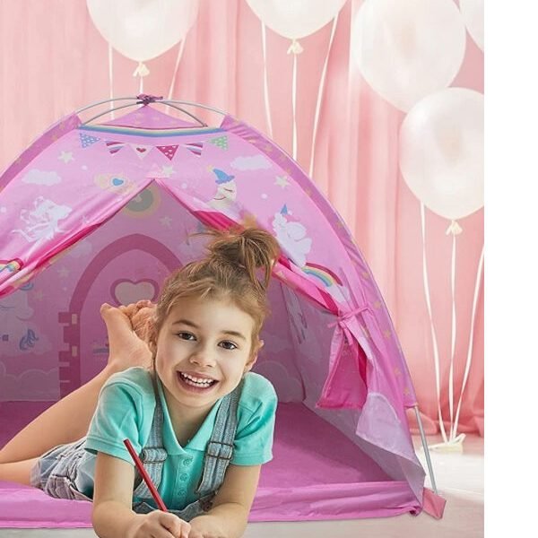 Παιδική σκηνή με μορφή κάστρου, για το παιδικό δωμάτιο ή τον εξωτερικό χώρο. Μέσα στη σκηνή, τα παιδιά βρίσκουν τον προσωπικό τους χώρο. Μπορούν να απομονωθούν για λίγο από το περιβάλλον και τον θόρυβο του σπιτιού και να χαρούν λίγες στιγμές μόνα τους, να χαλαρώσουν, να ξεκουραστούν και να φορτίσουν μπαταρίες. Επιπλέον, ο περιορισμένος χώρος της σκηνής τους δίνει μία αίσθηση ασφάλειας, νιώθουν πως έχουν βρει το καταφύγιό τους. Όλα αυτά, χαρίζουν στους μικρούς μας μία μοναδική αίσθηση ελευθερίας, απαραίτητη για την ψυχοσωματική τους ανάπτυξη.