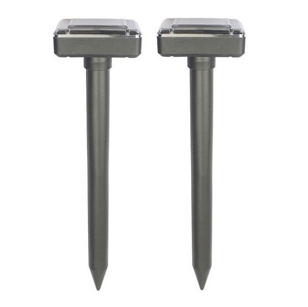 Ηλιακή συσκευή απώθηση τρωκτικών μέσω ηχητικών κυμάτων η οποία μπορεί να τοποθετηθεί σε κήπο ή αγρόκτημα και διαθέτει πολλαπλά κρυστάλλινα ηλιακά πάνελ. Λειτουργεί με μια επαναφορτιζόμενη μπαταρία ΑΑ και διαθέτει ανθεκτικό πλαστικό κοντάρι.