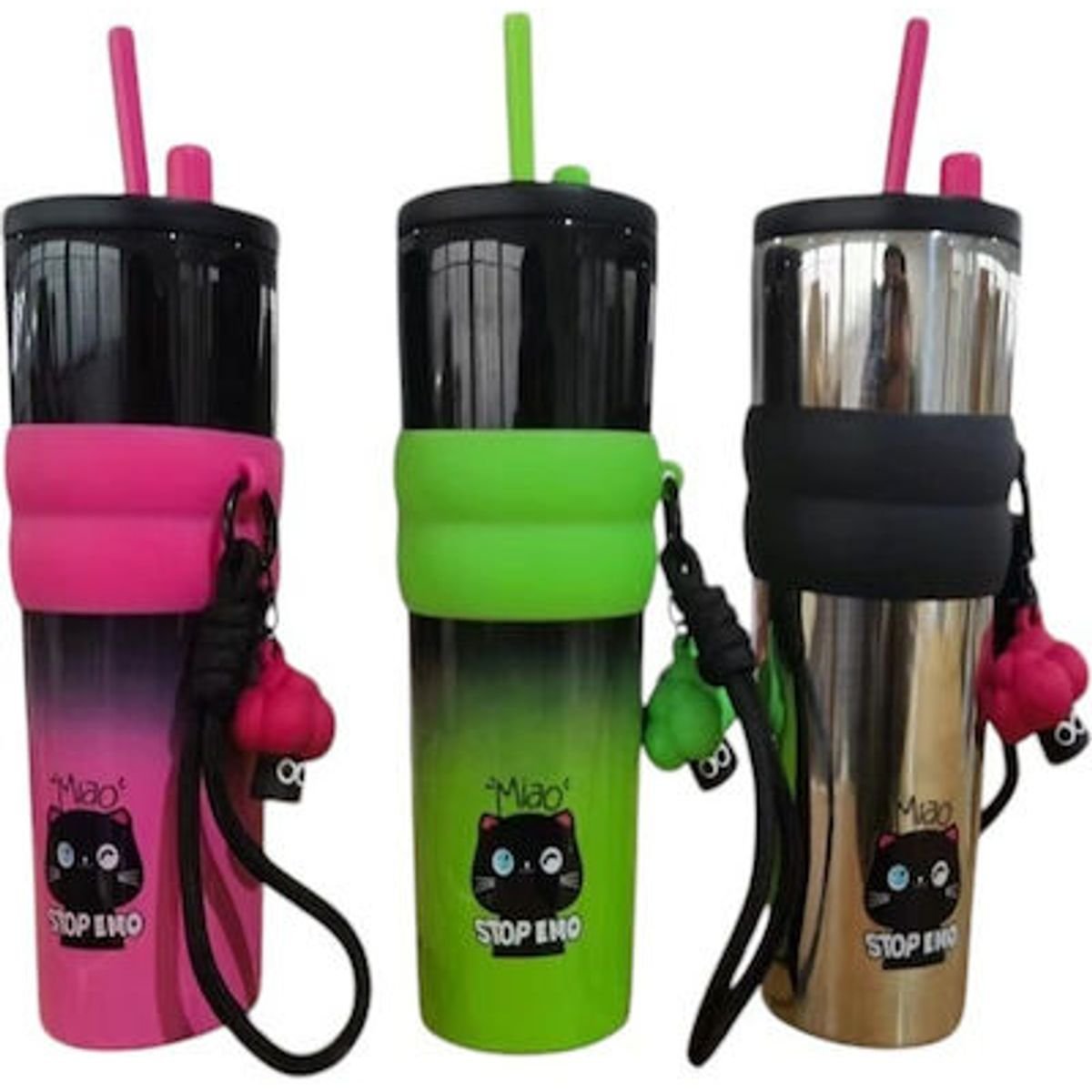 Ποτήρι Θερμός Ανοξείδωτο 710ml Πράσινο/ροζ/ασημί με Καλαμάκι