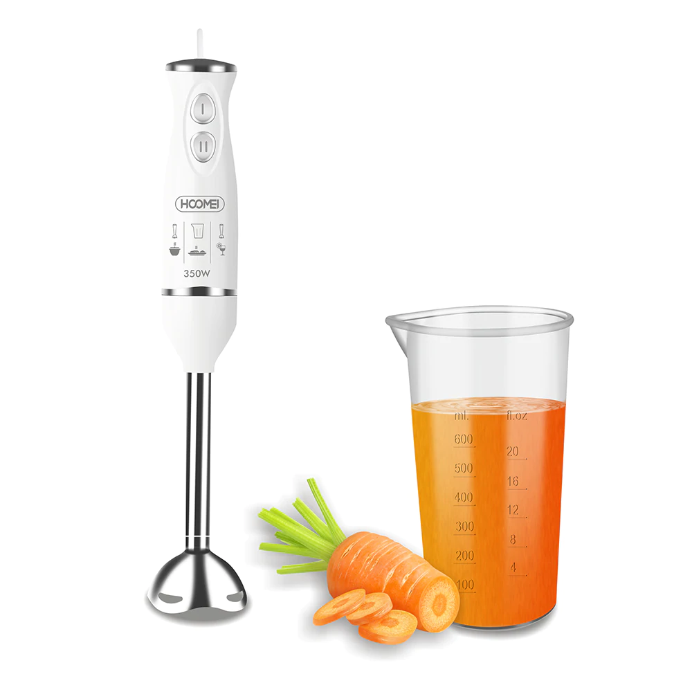 Ραβδομπλέντερ HM-6635S, της εταιρείας Hoomei, με ισχύ 350 Watt. Με το ραβδομπλέντερ θα μπορέσετε να πολτοποιήσετε τρόφιμα για παιδικές τροφές, να ομογενοποιήσετε σάλτσες, να φτιάξετε σπιτική μαγιονέζα, να δημιουργήσετε smoothies από οποιοδήποτε φρούτο επιθυμείτε ή ακόμα και να ετοιμάσετε σούπες. Είναι πολύ πρακτικό, εύχρηστο και καταλαμβάνει λιγότερο χώρο, σε σχέση με ένα επιτραπέζιο μπλέντερ. Μεγάλο του πλεονέκτημα αποτελεί το γεγονός ότι μπορείτε να επεξεργάζεστε τα υλικά σας μέσα σε οποιοδήποτε σκεύος, χωρίς να χρειάζεται να τα μεταφέρετε και να συσσωρεύονται στην κουζίνα σας διαρκώς άπλυτα σκεύη. Κατά τη διάρκεια του μαγειρέματος καλό θα είναι να έχετε πάντα την κεφαλή βυθισμένη μέσα στα τρόφιμα που επεξεργάζεστε, ώστε να αποφεύγονται ανεπιθύμητα πιτσιλίσματα αλλά και τυχόν εγκαύματα, στην περίπτωση που το τρόφιμο που επεξεργάζεστε είναι ακόμα καυτό.