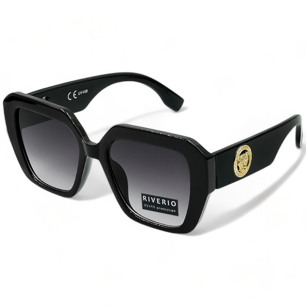 Riverio Γυναικεία Γυαλιά Ηλίου με Κοκκάλινο Σκελετό Σε Μαύρο Χρώμα και Μεταλλική Λεπτομέρεια στους Βραχίονες. Διαθέτουν ντεγκραντέ φακούς με βαθμιαία αλλαγή απόχρωσης από πάνω προς τα κάτω για πιο ξεκούραστη όραση. Οι φακοί είναι απορροφητικότητας UV400 και παρέχουν προστασία από την υπεριώδη ακτινοβολία. καθιστώντας τους τόσο μοντέρνους όσο και λειτουργικούς για ηλιόλουστες μέρες που περνάτε σε εξωτερικούς χώρους. Ιδανικά για όσους θέλουν να κάνουν μια τολμηρή δήλωση με τα γυαλιά τους. αυτά τα γυαλιά ηλίου είναι ένα απαραίτητο αξεσουάρ για εσάς.. Τα Γυαλιά Ηλίου διαθέτουν πιστοποίηση CE και πιστοποίηση Φακών UV400 που ακολουθεί την Ευρωπαϊκή οδηγία 89/686/EEC και είναι συμμορφωμένο με το πρότυπο γυαλιών ηλίου:NF EN:2005/A1: 2007. Είμαστε περήφανοι που μπορούμε να σας προσφέρουμε προϊόντα που πληρούν αυτά τα πρότυπα και σας ευχαριστούμε για την εμπιστοσύνη σας. Μαζί θα παραλάβετε θήκη μεταφοράς, πανάκι καθαρισμού και κορδόνι στήριξης.