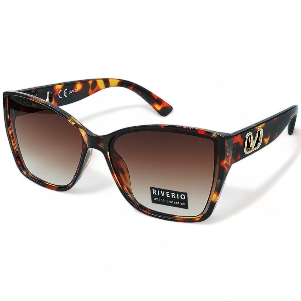 Riverio Γυναικεία Γυαλιά Ηλίου με Κοκκάλινο Σκελετό Σε Καφέ Ταρταρούγα Χρώμα με Μεταλλική Λεπτομέρεια στους Βραχίονες. Διαθέτουν φακούς με απορροφητικότητα UV400 και παρέχουν προστασία από την υπεριώδη ακτινοβολία. καθιστώντας τους τόσο μοντέρνους όσο και λειτουργικούς για ηλιόλουστες μέρες που περνάτε σε εξωτερικούς χώρους. Ιδανικά για όσους θέλουν να κάνουν μια τολμηρή δήλωση με τα γυαλιά τους. αυτά τα γυαλιά ηλίου είναι ένα απαραίτητο αξεσουάρ για εσάς.. Τα Γυαλιά Ηλίου διαθέτουν πιστοποίηση CE και πιστοποίηση Φακών UV400 που ακολουθεί την Ευρωπαϊκή οδηγία 89/686/EEC και είναι συμμορφωμένο με το πρότυπο γυαλιών ηλίου:NF EN:2005/A1: 2007. Είμαστε περήφανοι που μπορούμε να σας προσφέρουμε προϊόντα που πληρούν αυτά τα πρότυπα και σας ευχαριστούμε για την εμπιστοσύνη σας. Μαζί θα παραλάβετε θήκη μεταφοράς, πανάκι καθαρισμού και κορδόνι στήριξης.
