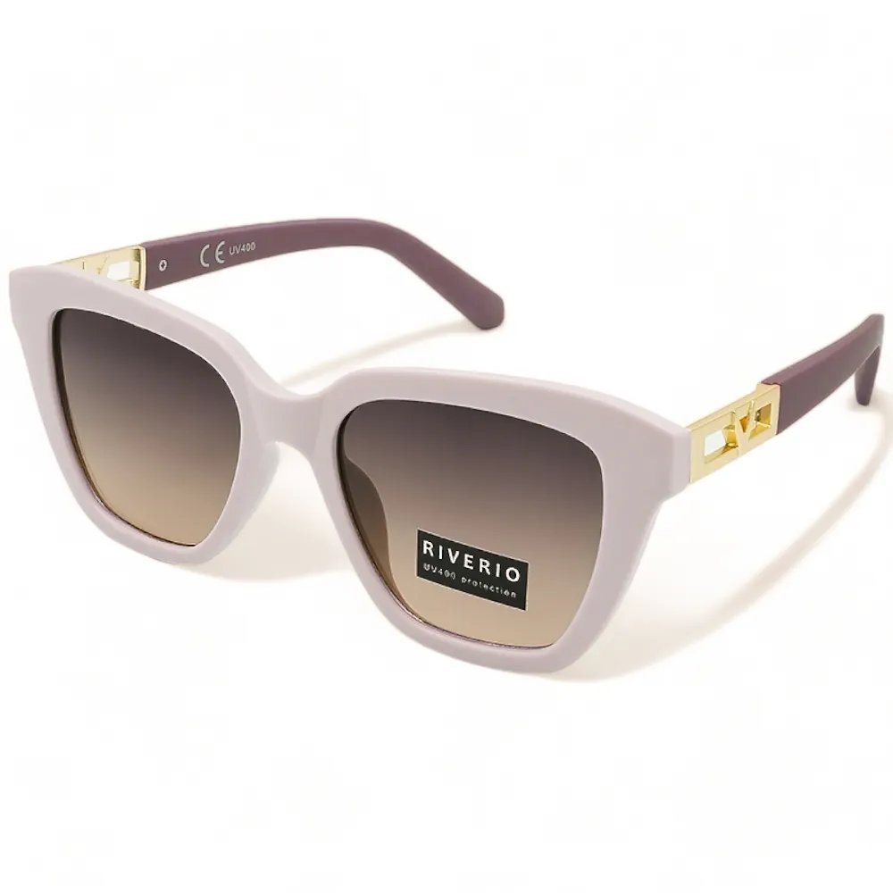 Riverio Γυναικεία Γυαλιά Ηλίου με Κοκκάλινο Σκελετό Σε Μωβ Χρώμα και Μεταλλική Λεπτομέρεια στους Βραχίονες. Διαθέτουν ντεγκραντέ φακούς με βαθμιαία αλλαγή απόχρωσης από πάνω προς τα κάτω για πιο ξεκούραστη όραση. Οι φακοί είναι απορροφητικότητας UV400 και παρέχουν προστασία από την υπεριώδη ακτινοβολία. καθιστώντας τους τόσο μοντέρνους όσο και λειτουργικούς για ηλιόλουστες μέρες που περνάτε σε εξωτερικούς χώρους. Ιδανικά για όσους θέλουν να κάνουν μια τολμηρή δήλωση με τα γυαλιά τους. αυτά τα γυαλιά ηλίου είναι ένα απαραίτητο αξεσουάρ για εσάς.. Τα Γυαλιά Ηλίου διαθέτουν πιστοποίηση CE και πιστοποίηση Φακών UV400 που ακολουθεί την Ευρωπαϊκή οδηγία 89/686/EEC και είναι συμμορφωμένο με το πρότυπο γυαλιών ηλίου:NF EN:2005/A1: 2007. Είμαστε περήφανοι που μπορούμε να σας προσφέρουμε προϊόντα που πληρούν αυτά τα πρότυπα και σας ευχαριστούμε για την εμπιστοσύνη σας. Μαζί θα παραλάβετε θήκη μεταφοράς, πανάκι καθαρισμού και κορδόνι στήριξης.
