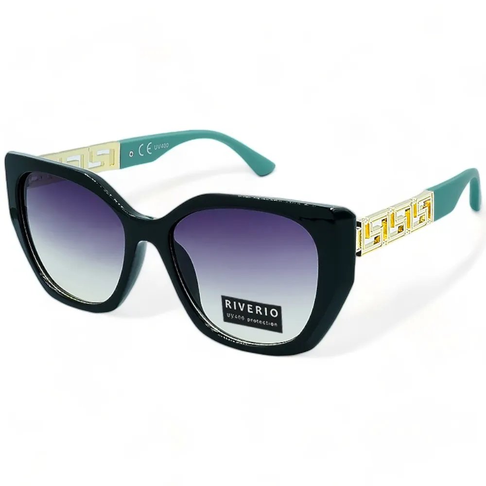 Riverio Γυναικεία Γυαλιά Ηλίου με Κοκκάλινο Σκελετό Σε Μαύρο Χρώμα και Πετρόλ με Μεταλλική Λεπτομέρεια στους Βραχίονες. Διαθέτουν ντεγκραντέ φακούς με βαθμιαία αλλαγή απόχρωσης από πάνω προς τα κάτω για πιο ξεκούραστη όραση. Οι φακοί είναι απορροφητικότητας UV400 και παρέχουν προστασία από την υπεριώδη ακτινοβολία. καθιστώντας τους τόσο μοντέρνους όσο και λειτουργικούς για ηλιόλουστες μέρες που περνάτε σε εξωτερικούς χώρους. Ιδανικά για όσους θέλουν να κάνουν μια τολμηρή δήλωση με τα γυαλιά τους. αυτά τα γυαλιά ηλίου είναι ένα απαραίτητο αξεσουάρ για εσάς.. Τα Γυαλιά Ηλίου διαθέτουν πιστοποίηση CE και πιστοποίηση Φακών UV400 που ακολουθεί την Ευρωπαϊκή οδηγία 89/686/EEC και είναι συμμορφωμένο με το πρότυπο γυαλιών ηλίου:NF EN:2005/A1: 2007. Είμαστε περήφανοι που μπορούμε να σας προσφέρουμε προϊόντα που πληρούν αυτά τα πρότυπα και σας ευχαριστούμε για την εμπιστοσύνη σας. Μαζί θα παραλάβετε θήκη μεταφοράς, πανάκι καθαρισμού και κορδόνι στήριξης.