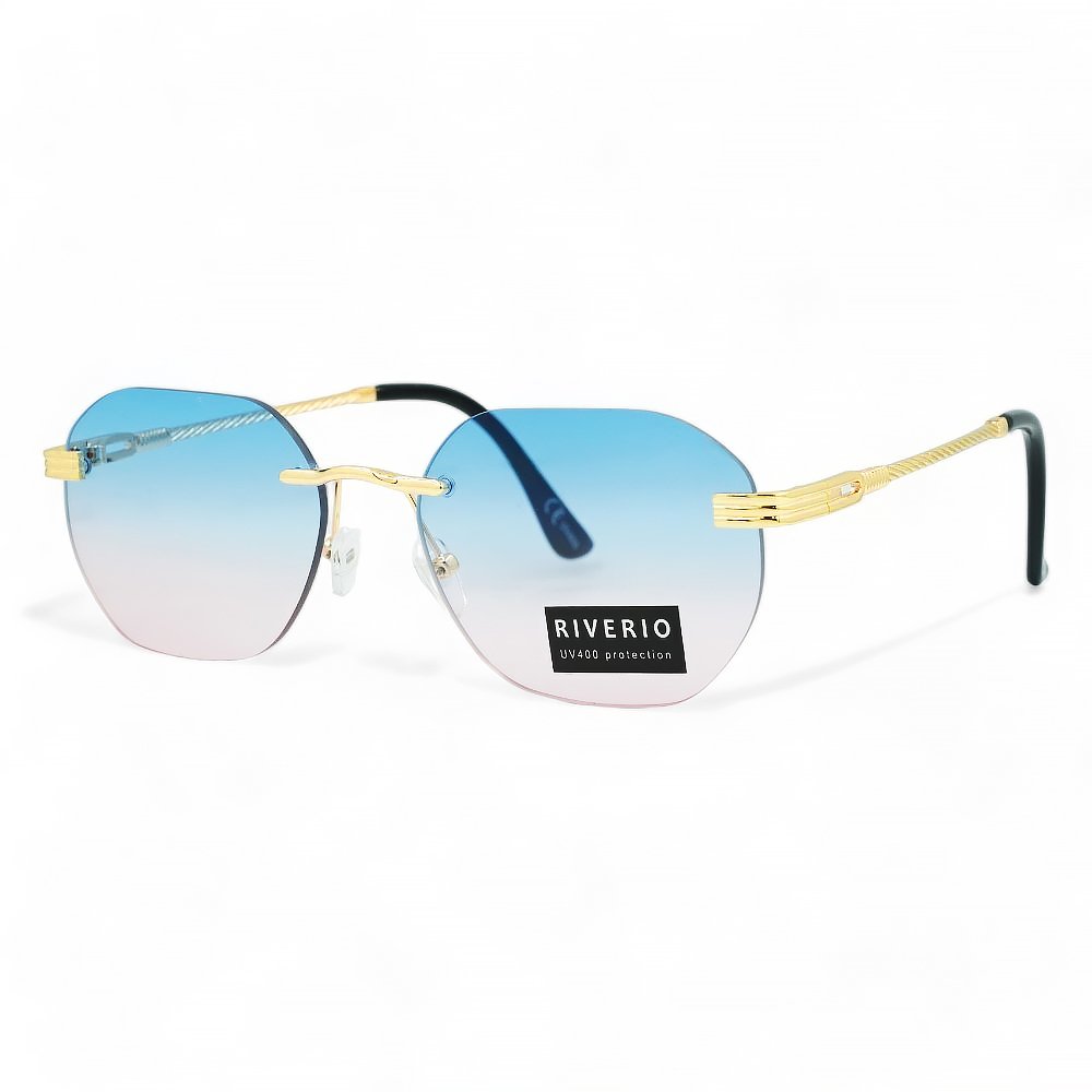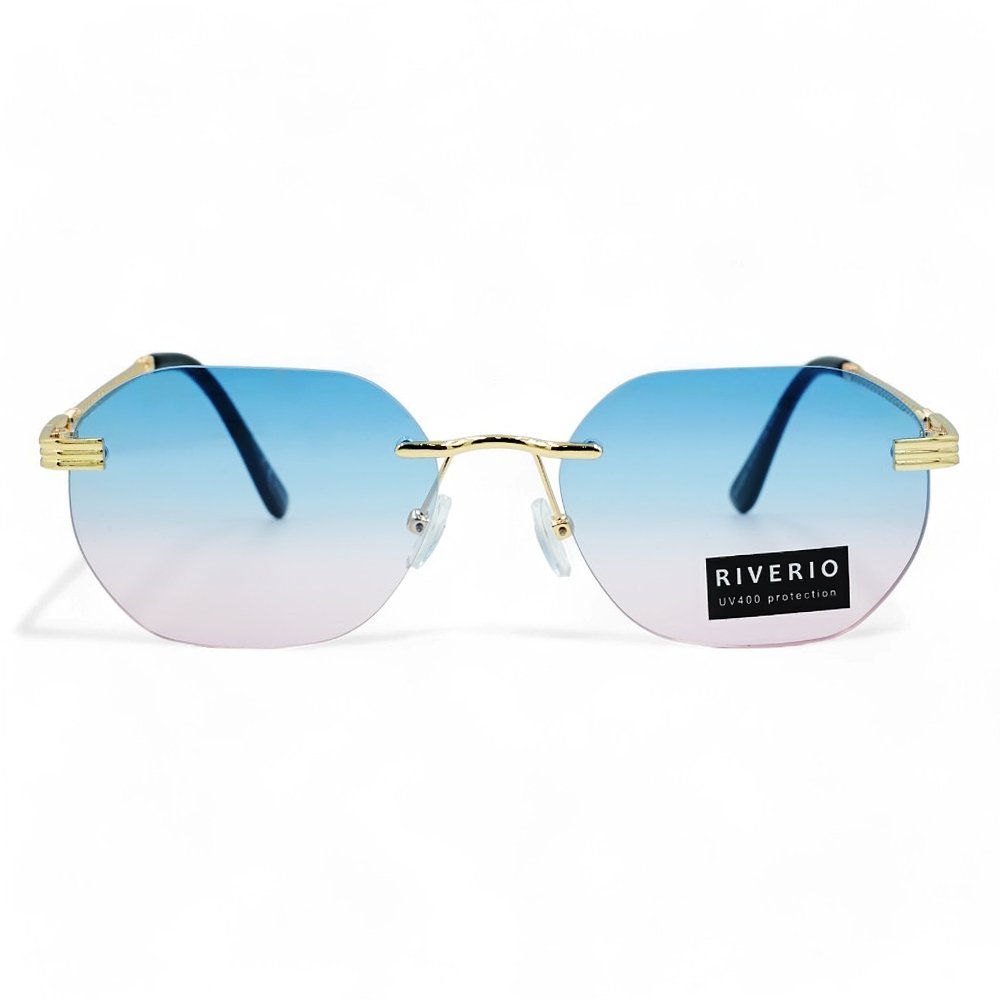 Riverio Unisex Γυαλιά Ηλίου UV400 Οβάλ με Χρυσό Μεταλλικό Σκελετό και Γαλάζιο ντεγκραντέ Φακό RV42402