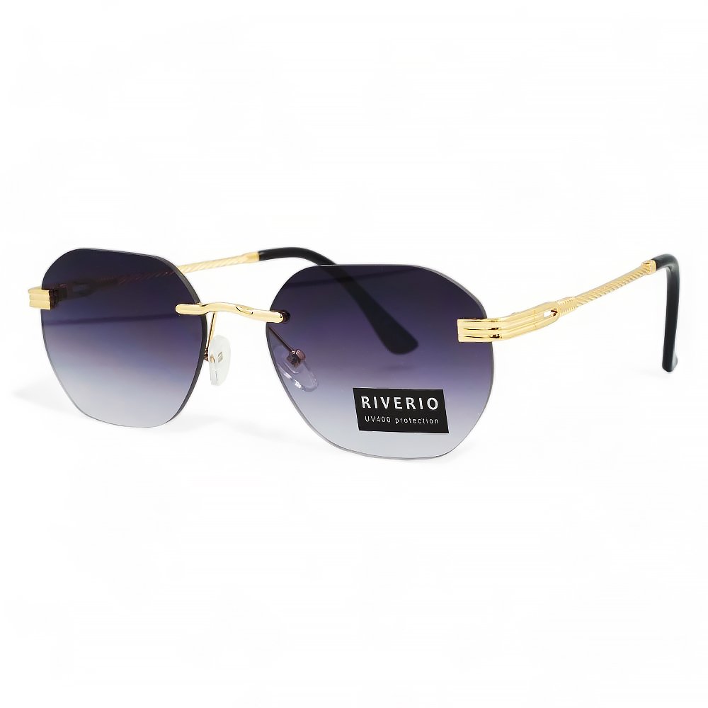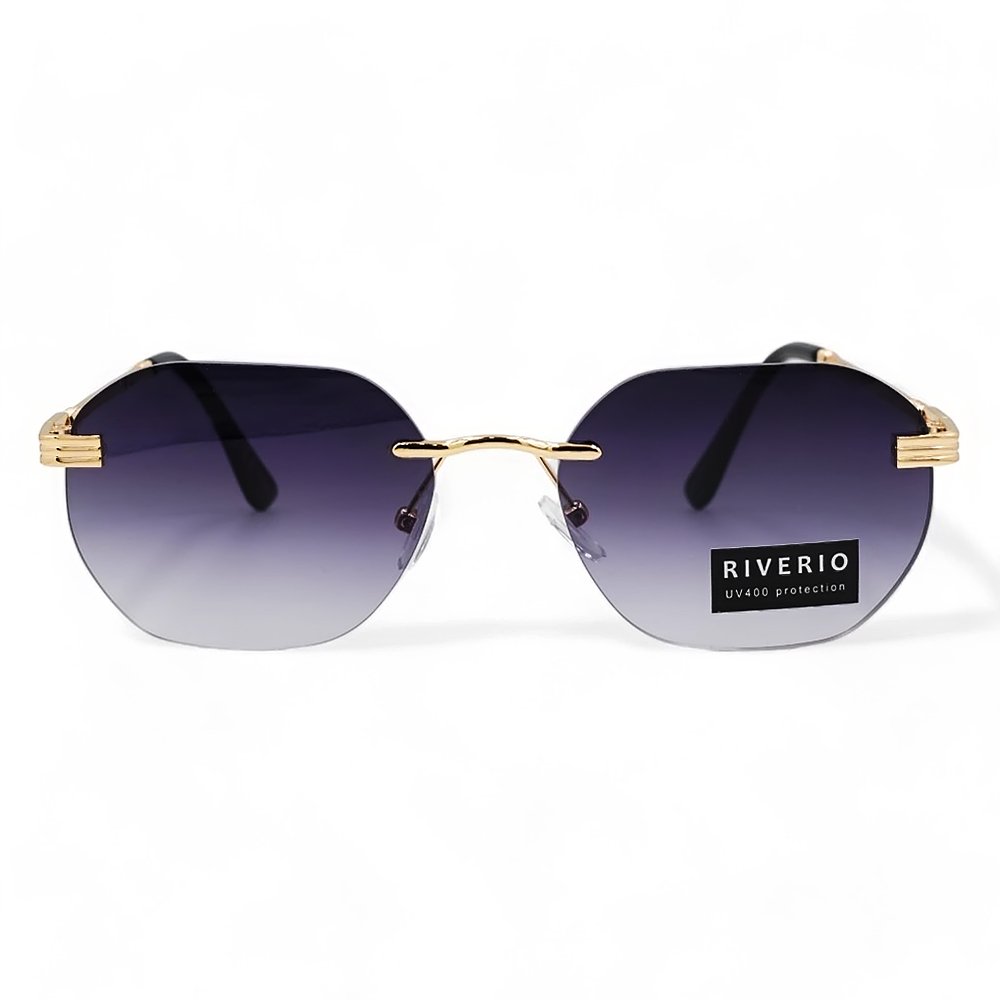 Riverio Unisex Γυαλιά Ηλίου με Χρυσό Μεταλλικό Σκελετό. Διαθέτουν ντεγκραντέ φακούς με βαθμιαία αλλαγή απόχρωσης από πάνω προς τα κάτω για πιο ξεκούραστη όραση. Οι φακοί είναι απορροφητικότητας UV400 και παρέχουν προστασία από την υπεριώδη ακτινοβολία. καθιστώντας τους τόσο μοντέρνους όσο και λειτουργικούς για ηλιόλουστες μέρες που περνάτε σε εξωτερικούς χώρους. Ιδανικά για όσους θέλουν να κάνουν μια τολμηρή δήλωση με τα γυαλιά τους. αυτά τα γυαλιά ηλίου είναι ένα απαραίτητο αξεσουάρ για εσάς.. Τα Γυαλιά Ηλίου διαθέτουν πιστοποίηση CE και πιστοποίηση Φακών UV400 που ακολουθεί την Ευρωπαϊκή οδηγία 89/686/EEC και είναι συμμορφωμένο με το πρότυπο γυαλιών ηλίου:NF EN:2005/A1: 2007. Είμαστε περήφανοι που μπορούμε να σας προσφέρουμε προϊόντα που πληρούν αυτά τα πρότυπα και σας ευχαριστούμε για την εμπιστοσύνη σας. Μαζί θα παραλάβετε θήκη μεταφοράς, πανάκι καθαρισμού και κορδόνι στήριξης.