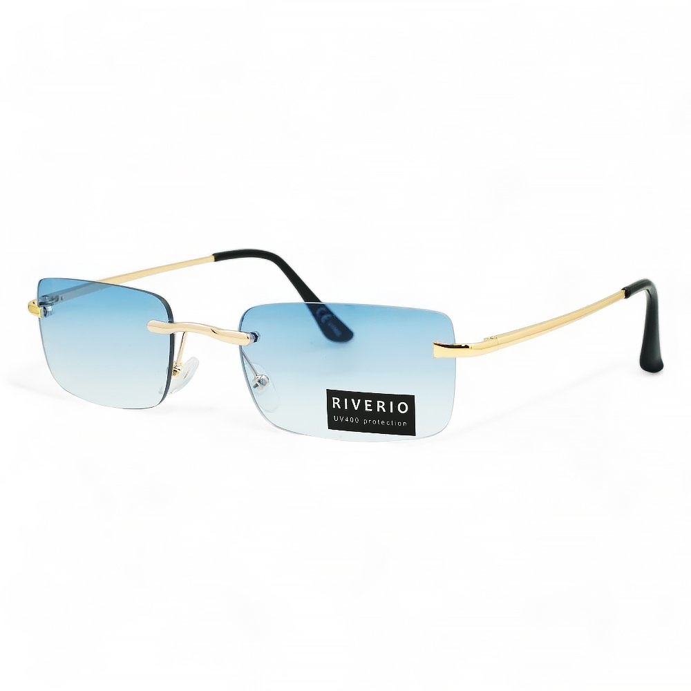 Riverio Unisex Γυαλιά Ηλίου UV400 Παραλληλόγραμμα με Χρυσό Μεταλλικό Σκελετό και Γαλάζιο ντεγκραντέ Φακό RV42326