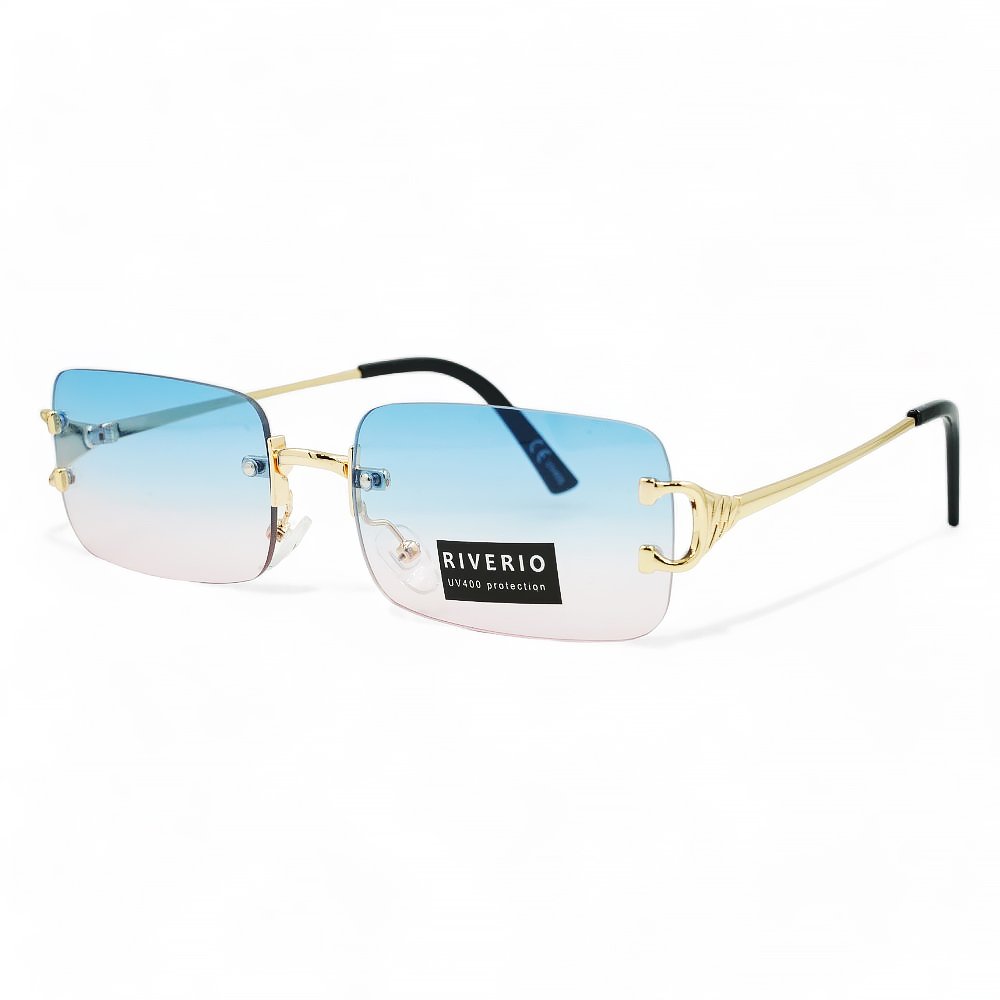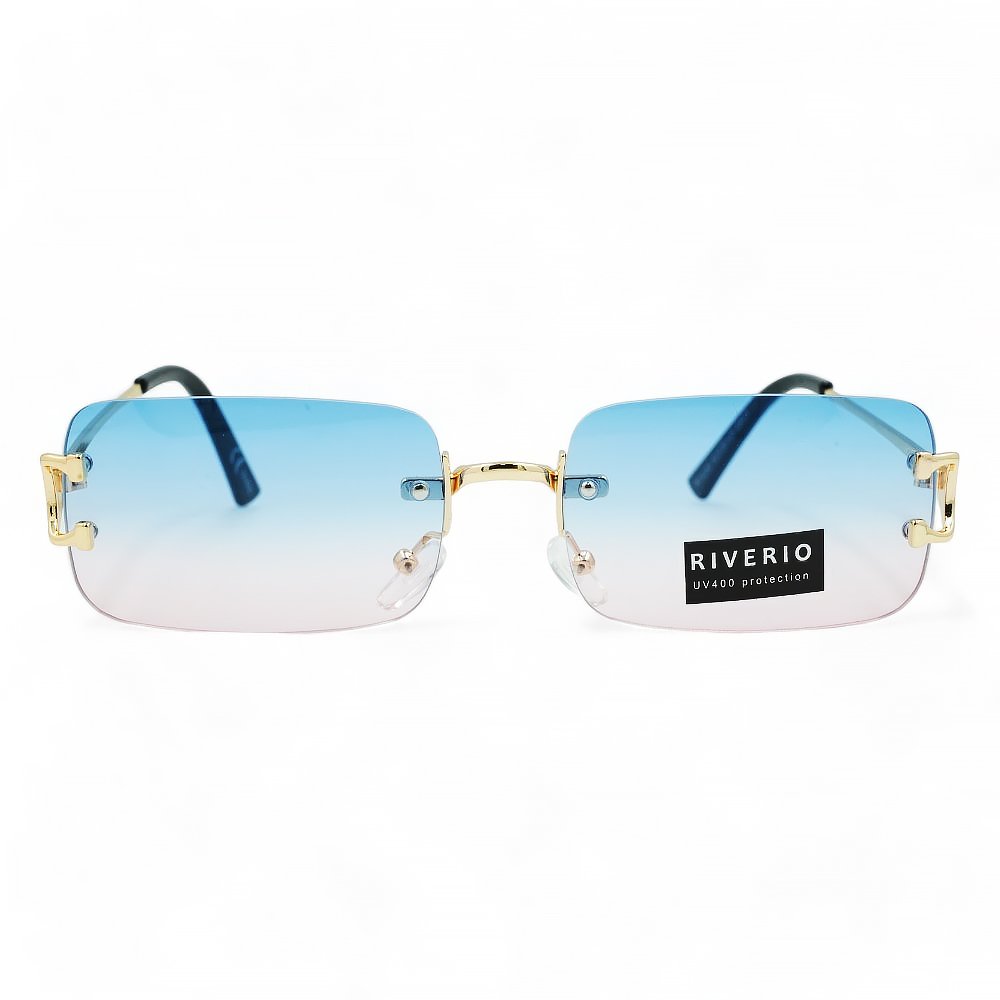 Riverio Unisex Γυαλιά Ηλίου UV400 Παραλληλόγραμμα με Χρυσό Μεταλλικό Σκελετό και Γαλάζιο ντεγκραντέ Φακό RV42351
