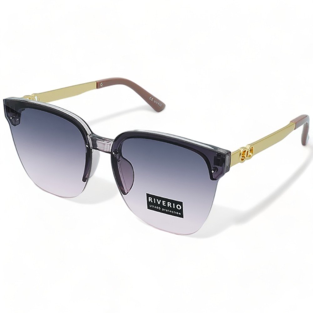 Riverio Unisex Γυαλιά Ηλίου με Κοκκάλινο Σκελετό Σε Διάφανο Μωβ Χρώμα και Μεταλλικούς Βραχίονες. Διαθέτουν ντεγκραντέ φακούς με βαθμιαία αλλαγή απόχρωσης από πάνω προς τα κάτω για πιο ξεκούραστη όραση. Οι φακοί είναι απορροφητικότητας UV400 και παρέχουν προστασία από την υπεριώδη ακτινοβολία. καθιστώντας τους τόσο μοντέρνους όσο και λειτουργικούς για ηλιόλουστες μέρες που περνάτε σε εξωτερικούς χώρους. Ιδανικά για όσους θέλουν να κάνουν μια τολμηρή δήλωση με τα γυαλιά τους. αυτά τα γυαλιά ηλίου είναι ένα απαραίτητο αξεσουάρ για εσάς.. Τα Γυαλιά Ηλίου διαθέτουν πιστοποίηση CE και πιστοποίηση Φακών UV400 που ακολουθεί την Ευρωπαϊκή οδηγία 89/686/EEC και είναι συμμορφωμένο με το πρότυπο γυαλιών ηλίου:NF EN:2005/A1: 2007. Είμαστε περήφανοι που μπορούμε να σας προσφέρουμε προϊόντα που πληρούν αυτά τα πρότυπα και σας ευχαριστούμε για την εμπιστοσύνη σας. Μαζί θα παραλάβετε θήκη μεταφοράς, πανάκι καθαρισμού και κορδόνι στήριξης.