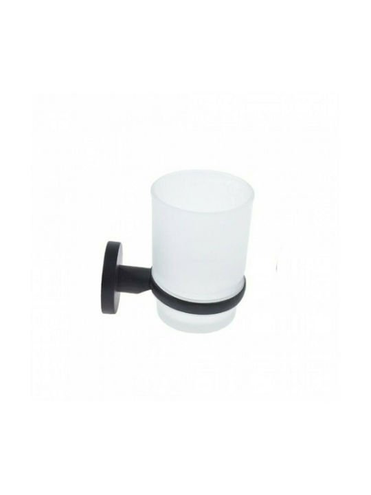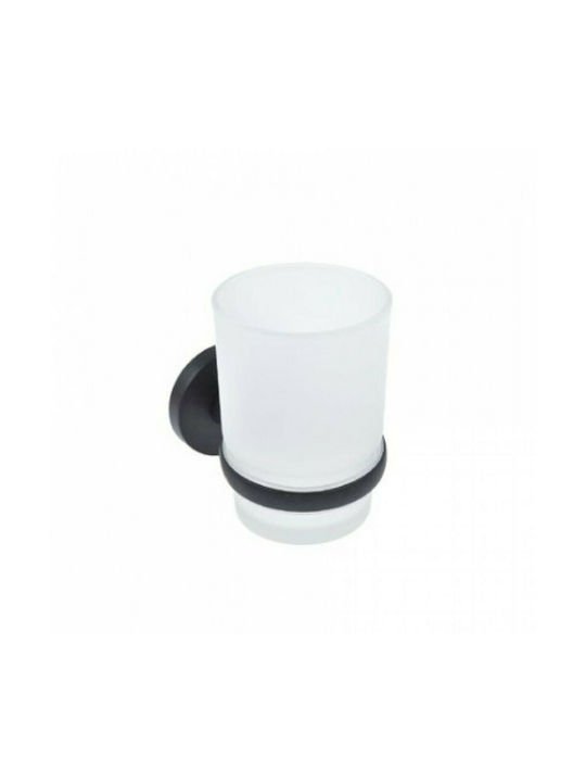 Γυάλινη ποτηροθήκη μπάνιου με μαύρη ματ βάση. Λειτουργεί ως αποθηκευτικός χώρος για την οδοντόβουρτσα και άλλα είδη προσωπικής υγιεινής.