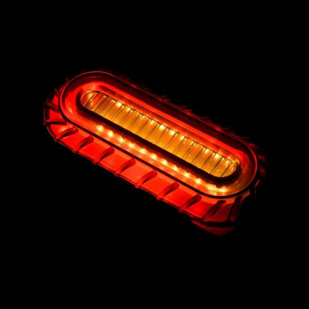 Σετ universal LED φλας 12V για μοτοσυκλέτες με υποδοχή βίδας 10mm. Μοντέρνος σχεδιασμός με διπλό φωτισμό, κόκκινο στατικό και βηματικό πορτοκαλί για την ένδειξη φλας.