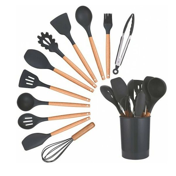 Σετ Εργαλείων Μαγειρικής από Σιλικόνη 12τμχ Μαύρο KUS-1709