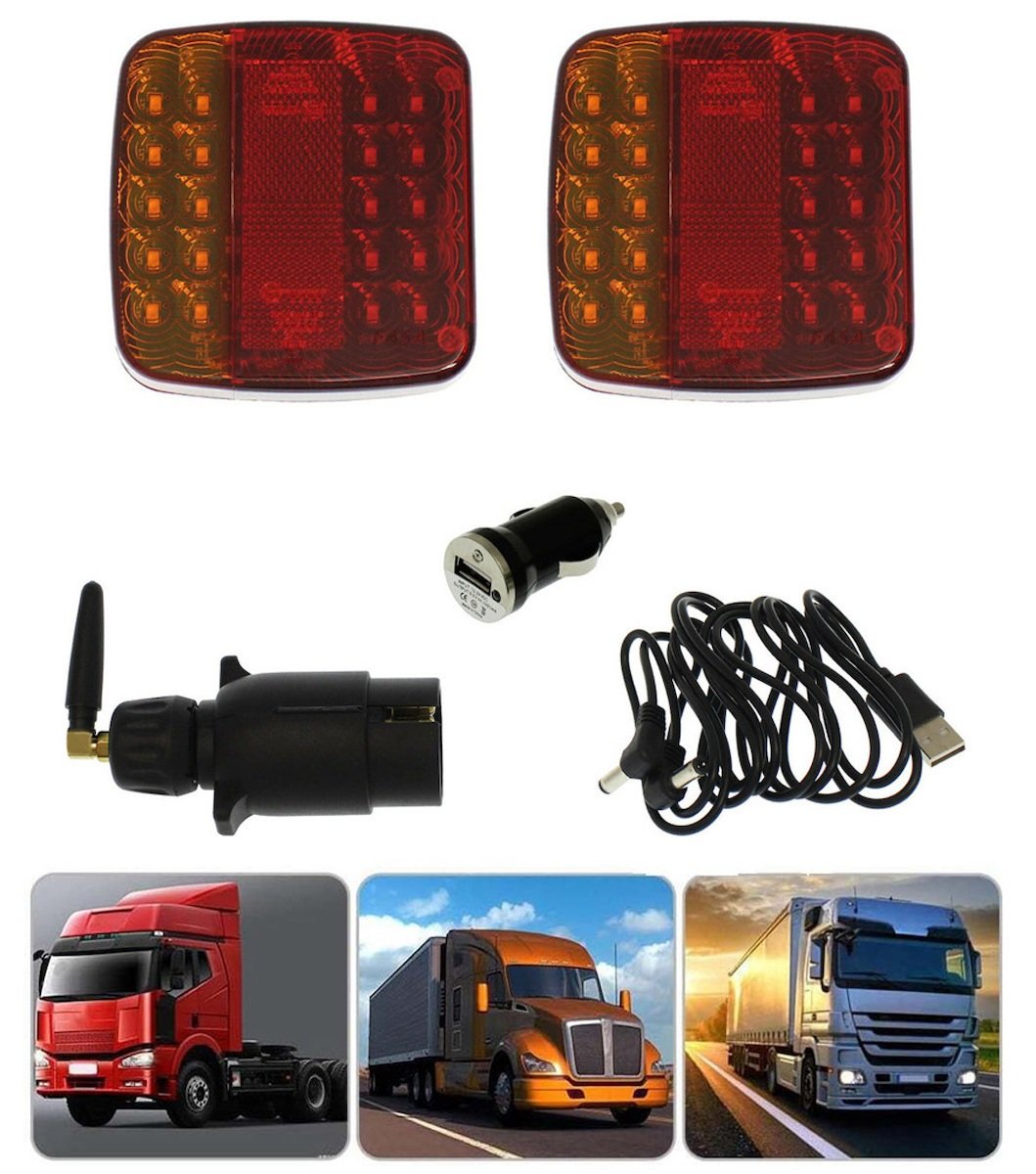 Ασύρματα Μαγνητικά Φανάρια Φλας-Στοπ-Πορείας 12/24V 2τμχ με USB για Τρέιλερ.