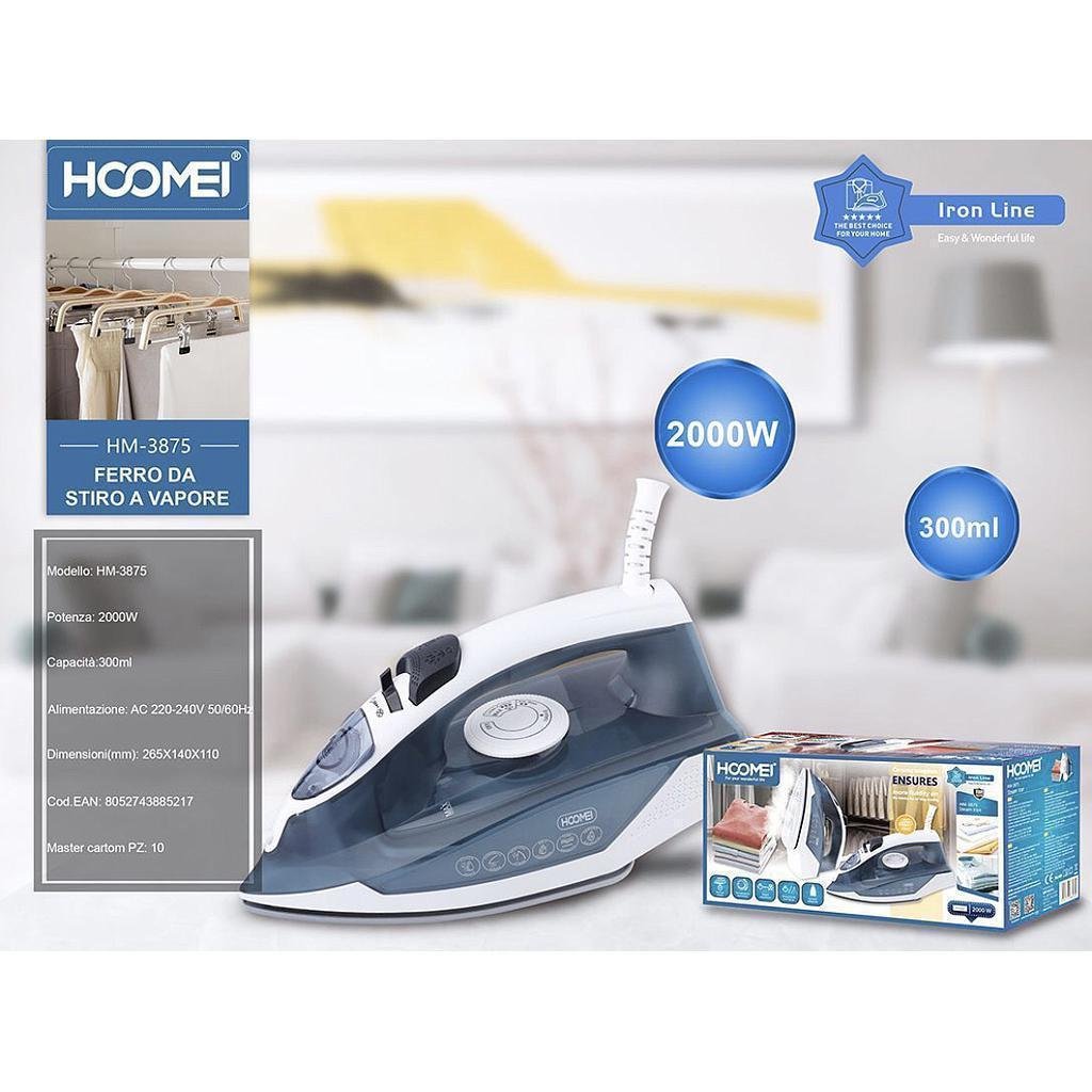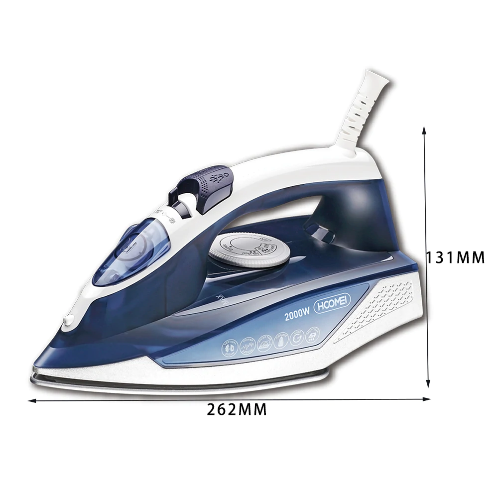 Σίδερο Ατμού 2000W 300ml με Συνεχόμενη Παροχή 25gr/min και Κεραμική Πλάκα Hoomei HM-3875 Μπλε