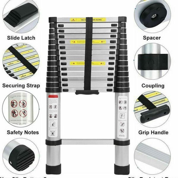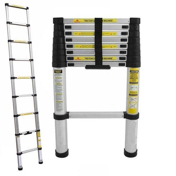 Η πτυσσόμενη τηλεσκοπική σκάλα είναι κατασκευασμένη από κράμα αλουμινίου για μεγάλη σταθερότητα και αντοχή.