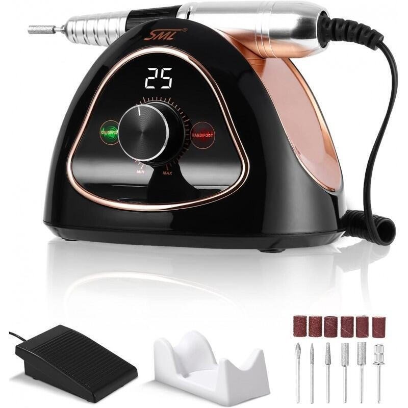 Επαγγελματικός τροχός νυχιών της εταιρείας Sml με λειτουργία ρεύματος, ισχύ 65 watt και μέγιστη ταχύτητα 45000 στροφές ανά λεπτό.