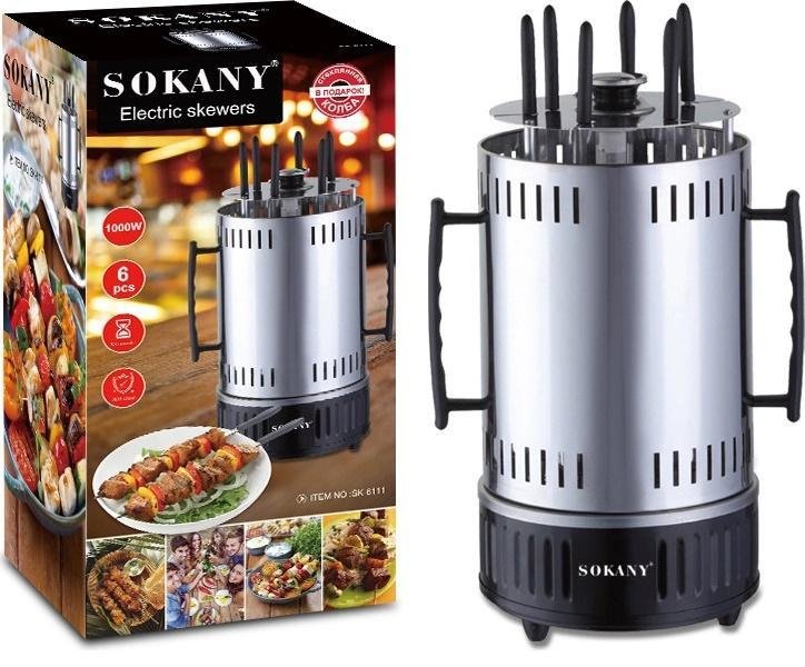Επιτραπέζια ψησταριά Inox από την εταιρεία Sokany με μέγιστη ισχύ 1000W. Εύκολο και γρήγορο ψήσιμο για τα σουβλάκια και τα κεμπάμπ σας, κάθετης χρήσης και με κεραμικό θερμαντήρα.