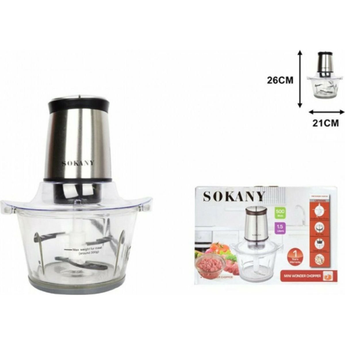 Πολυκόπτης multi LB7004A, της εταιρείας Sokany, με ισχύ 500 Watt. Είναι κατάλληλος για να τεμαχίζει, κόβει σε φέτες, ψιλοκόβει, τρίβει ή ακόμα και πολτοποιεί τα υλικά σας, σε αντίθεση με ένα μπλέντερ που κυρίως τα υγροποιεί. Είναι ιδανικός για να επεξεργαστείτε λαχανικά, ενώ είναι το ίδιο χρήσιμος για τρίψιμο τυριών, την κοπή αλλαντικών σε φέτες ακόμη και στο τρίψιμο ψωμιού και σοκολάτας.