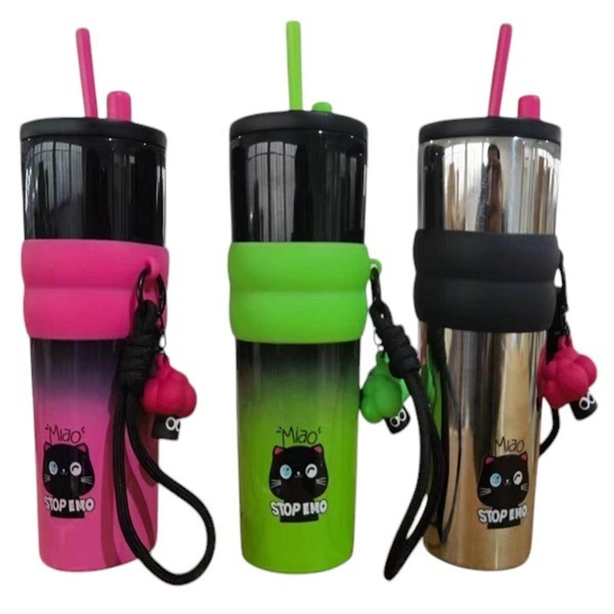 Θερμός – ποτήρι με καλαμάκι και ανοξείδωτο ατσάλι διπλού τοιχώματος 710ml JB-1029 Πράσινο/Ροζ/Ασημί