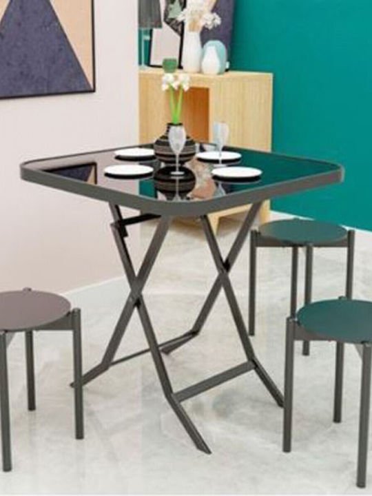 Τραπέζι Καφενείου για Μικρούς Εξωτερικούς Χώρους Πτυσσόμενο με Γυάλινη Επιφάνεια Μαύρο 70x70x75εκ. SDS-21342