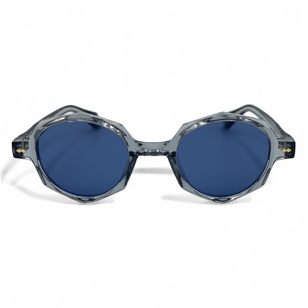 Unisex Γυαλιά Ηλίου UV400 Πολύγωνο με Διάφανο Γκρι Σκελετό και Μπλε Φακό 650146