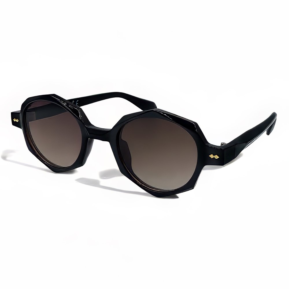Unisex Γυαλιά Ηλίου UV400 Πολύγωνο με Μαύρο Σκελετό και Καφέ ντεγκραντέ Φακό 650142