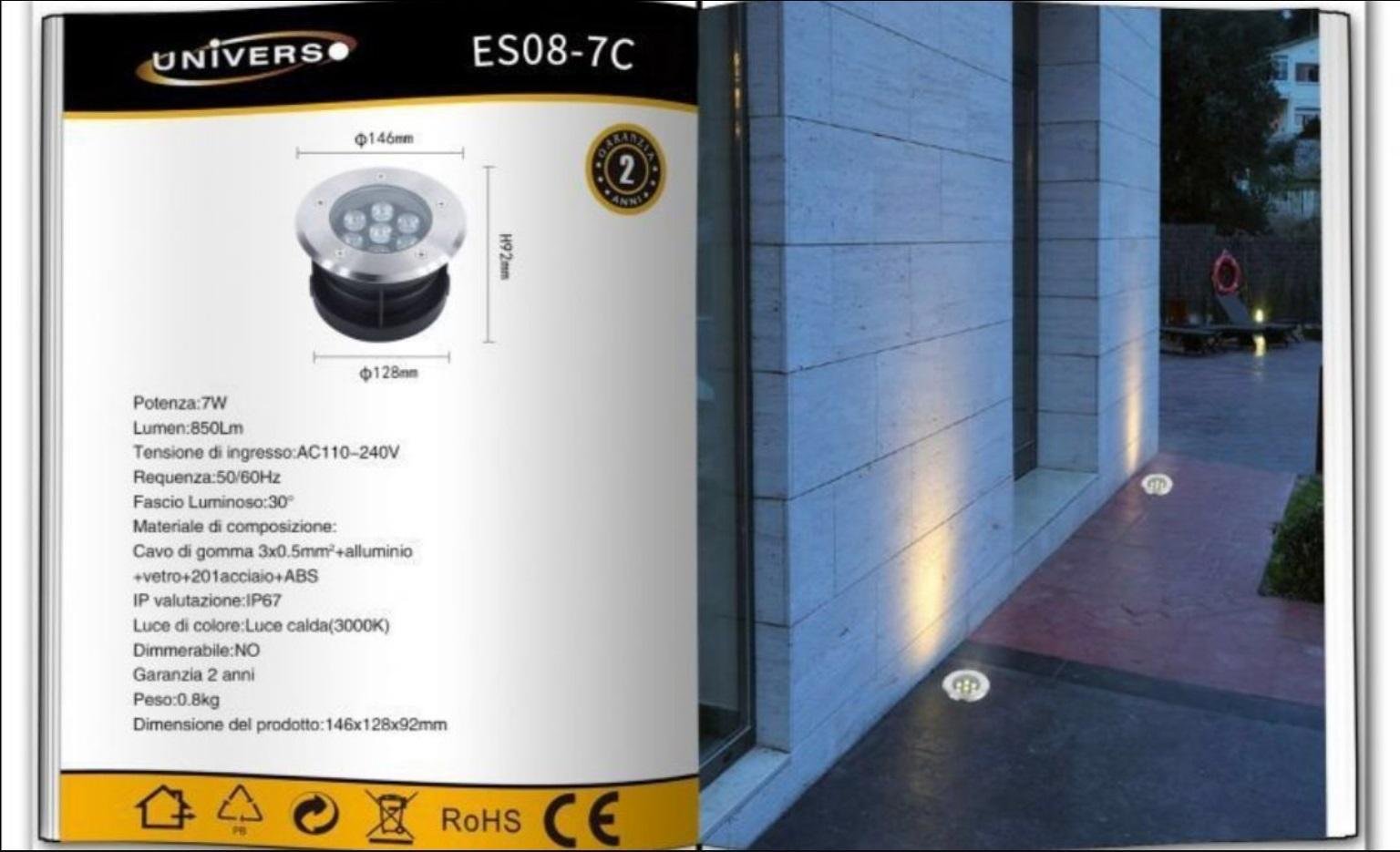 Universo Χωνευτό φωτιστικό για εξωτερικούς χώρους IP67 850LM 3000K Θερμό Λευκό 7W ES08-7C Inox