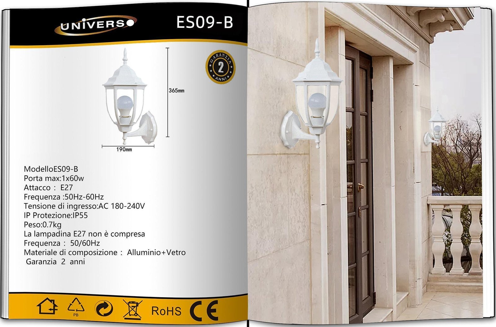 Vintage Φωτιστικό τοίχου εξωτερικού χώρου E27 IP45 Universo ES09-B Λευκό